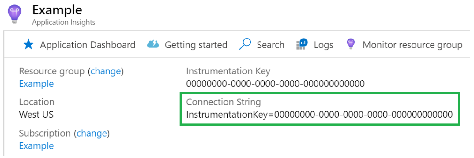 Navigate to your application insights instance, and copy the InstrumentationKey